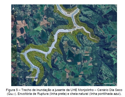 Em 2024, foi realizado o estudo de Dam Break da barragem da UHE Monjolinho, conforme requisitos da Resolução 1.064/2023 da ANEEL. Inicialmente, o trecho de propagação da modelagem hidrodinâmica se iniciaria na UHE Monjolinho e percorreria o trecho de jusante até a UHE Foz do Chapecó.